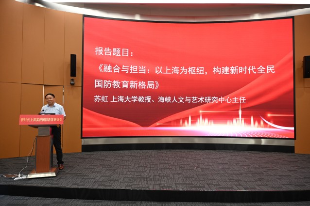 上海大学教授、海峡人文与艺术研究中心主任苏虹作《融合与担当:以上海为枢纽,构建新时代全民国防教育新格局》主旨报告,指出在充满不确定性的新时代,国防教育不能局限于军事知识的普及,而应该是一场深刻的全民心智塑造工程,当前看到成绩的同时,也要看到面临的挑战,提出四个融合的实践路径应对挑战,一是与科技创新融合,打造智慧国防教育模式, 二是与城市文化融合,营造沉浸式国防教育生态,三是与学校教育融合,健全阶梯式国防教育体系。 四是与两岸关系融合,突出使命性国防教育导向。