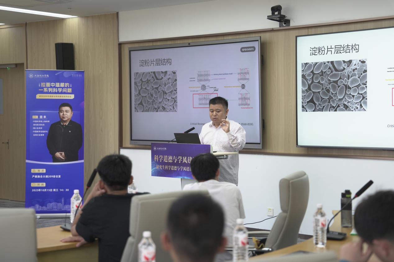 10月15日下午,由党委研究生工作部主办、材料学院承办的研究生科学道德与学风建设论坛顺利举行。中国科学院上海高等研究院正高级工程师、研究生导师金利民和中国科学院上海高等研究院研究员、博士生导师田丰受邀作专题报告,相关专业的研究生同学积极参与。论坛由党委研工部副部长李洁主持。