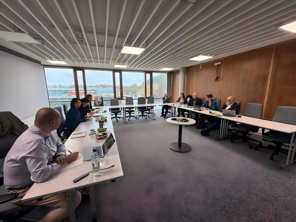 10月15日上午,代表团访问德国凯撒斯劳滕应用技术大学,与校长Hans-Joachim Schmidt、副校长Magin等举行工作会议。会议聚焦于两校合作举办的中外合作办学机构专业更新等核心议题,其间召开了联合管理委员会会议,确定了新的合作专业方向并对申报流程进行了具体对接。双方还就ASIIN认证事宜进行了详细交流。当日下午,代表团参观了该校电气、机械类实验室,并与在德学习的学生座谈。本次会谈取得实质性进展,有力推动了我校中德合作办学机构的优化与升级,是构建“双培养主体、双教师队伍”培养模式的关键一步。