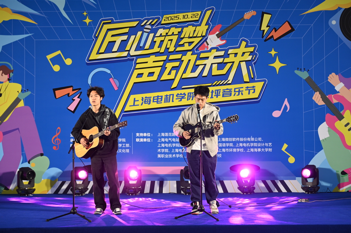 金秋送爽,乐动江川。10月22日晚,上海电机学院“匠心筑梦,声动未来”草坪音乐节在闵行校区足球场成功举办。本次活动由校团委主办、高职学院承办,不仅是一场青春洋溢的艺术展演,更是一次深化“职普融通、文化育人”、推动校政企协同发展的生动实践。上海电机学院党委副书记朱洪春,相关职能部门负责人,闵行校区各二级学院副书记,闵行区江川文化馆负责人,上海汽轮机厂上海工匠王勇,上海微创软件股份有限公司代表,上海电机学院附属科技学校、上海市环境学校、上海海事大学附属职业技术学校以及上海工程管理学校等四所中职院校师生代表共同参与,齐聚电机校园,共谱融合新篇。
