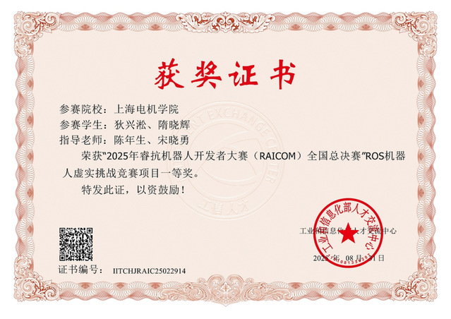 2025年睿抗机器人开发者大赛(RAICOM)上海赛区 | ROS机器人虚实挑战竞赛 | 上海市级 二等奖 | 狄兴淞、隋晓辉 | 陈年生、 宋晓勇 |