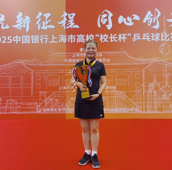 11月9日,由上海市教委、中国教育工会上海市委员会主办,上海市大学生体育协会、上海体育大学承办、上海市大学生体育协会乒乓球分会协办的2025中国银行上海市高校“校长杯”乒乓球比赛圆满落幕。我校代表队在比赛中团结协作、奋勇拼搏,展现了积极向上的精神风貌,张川总会计师更是凭借高超球技荣获女子单打季军。