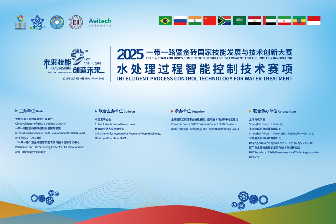 2025年11月7日至9日,2025“一带一路”暨金砖国家技能发展与技术创新大赛——水处理过程智能控制技术赛项(高校组)在上海电机学院闵行校区成功举办。本次大赛由金砖国家工商理事会中方理事会、“一带一路”暨金砖国家技能发展国际联盟、 “一带一路”暨金砖国家技能发展与技术创新培训中心主办,上海电机学院、上海逾航信息科技有限公司等单位联合承办。大赛聚焦水处理过程智能控制、绿色技术创新与高技能人才培养,为来自各地的参赛选手搭建了交流互鉴、切磋技艺的国际化平台,吸引了21所院校41名参赛选手参与。