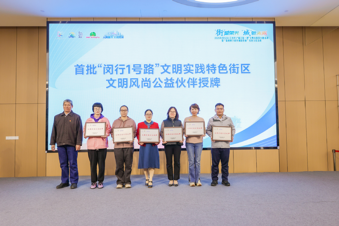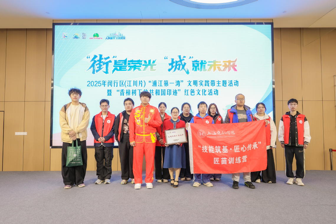 在本次活动中,上海电机学院被授予“闵行1号路”文明实践特色街区文明风尚公益伙伴单位。这一举措标志着校地双方在思政育人、红色教育、社区服务等领域的合作迈入新阶段。高职学院将依托江川深厚的工业底蕴和红色资源,推动理论宣讲、志愿服务、文化共创等项目常态化落地,校地双方共同描绘产教融合、文教共荣的城区新图景。