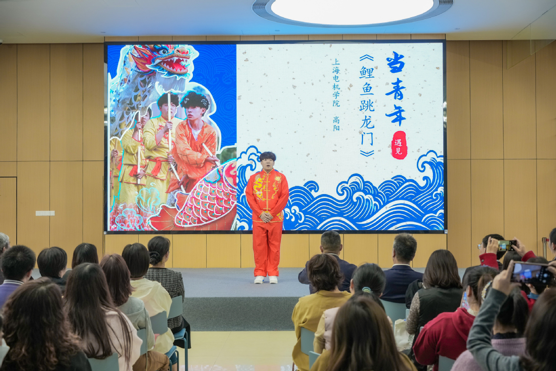 在首期“香樟印迹·人民城市”文明实践课堂中,我校高职学子高阳作了以“当青年遇见《鲤鱼跳龙门》”为主题的分享,详解高职青年学子传承上海非物质文化遗产《鲤鱼跳龙门》项目背后的故事,引起了在座各位市民的关注;该分享巧妙融合非遗文化与当代青年视角,生动诠释了传统技艺的时代价值;同时,该节目不仅展现了学生对本土文化的理解与创新表达,也体现了高校在非遗活化传承中的责任担当。