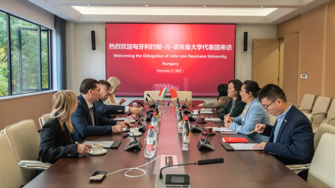 Nagy Zoltan校长对我方的热情接待表示感谢,并高度赞赏我校鲜明的办学特色与优美的校园环境。他介绍了该校的学科布局、产学研协同机制以及推进欧洲高等教育国际化的实践经验,同时回顾了两校已取得的合作成果。他表示,上海的城市活力与上海电机学院的务实创新精神令人印象深刻,对两校未来的合作充满信心。他还特别表达了对上午参观的氢能中心的浓厚兴趣,希望未来五年内能在氢能领域共建科研平台,推动双学位及“2+2”联合培养项目,共同培养熟悉中国制造业体系、助力中匈企业合作的专门人才。