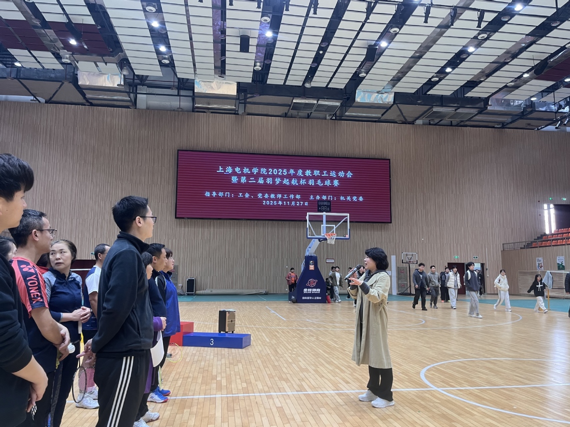 党委副书记、副院长、工会主席李晓军来到现场,与参赛选手一起热身练球,为参赛选手加油助威。她与选手们亲切交流,强调体育不仅是强身健体的途径,更是锤炼意志、凝聚团队的重要方式。她希望以此次羽毛球赛为契机,进一步推动教职工之间的沟通与协作,并预祝所有选手都能赛出风格、赛出水平、赛出友谊。机关党委、教师工作部、工会等相关负责人一同出席并为获奖选手颁奖。