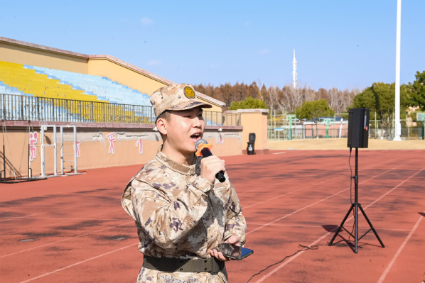 营销2312 逯楠 退役士兵代表:重新穿起了冬迷彩和作战靴,打了许久没有训练的刺杀操,还第一次带起了小学一年级和幼儿园的小朋友们,将自己所了解到的国防知识以及军事知识教给他们,倍感荣幸,也很有意义。希望我们做的演讲以及军事操表演可以激发起他们的军事兴趣,长大后也可以为国防建设贡献出自己的力量。