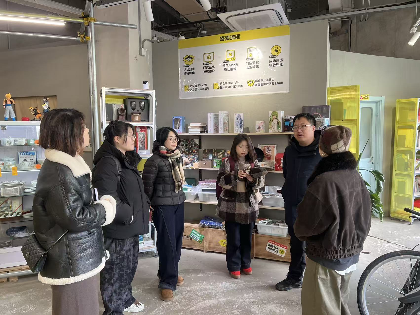 商学院院长马慧民、物流管理专业负责人张炜等一行赴闲鱼循环商店(上海首店、杉达店、上理店)开展调研,阿里巴巴菜鸟驿站京沪大区总经理赵璇一行陪同调研。此次调研旨在拓展与菜鸟驿站实践教学基地的进一步合作,聚焦物流专业建设与产教融合发展,实地了解闲鱼循环商店“线上数字平台+线下城市循环网络”运营模式,深入探讨全品类闲置物品的分拣、仓储等布局。双方围绕物流专业人才培养与行业需求的衔接展开交流,就校企共建实践教学资源、联合开发物流课程、打造物流卓越班实习实训基地等深入交流,为学院物流专业对接行业新业态、优化应用型人才培养体系提供了实践参考。