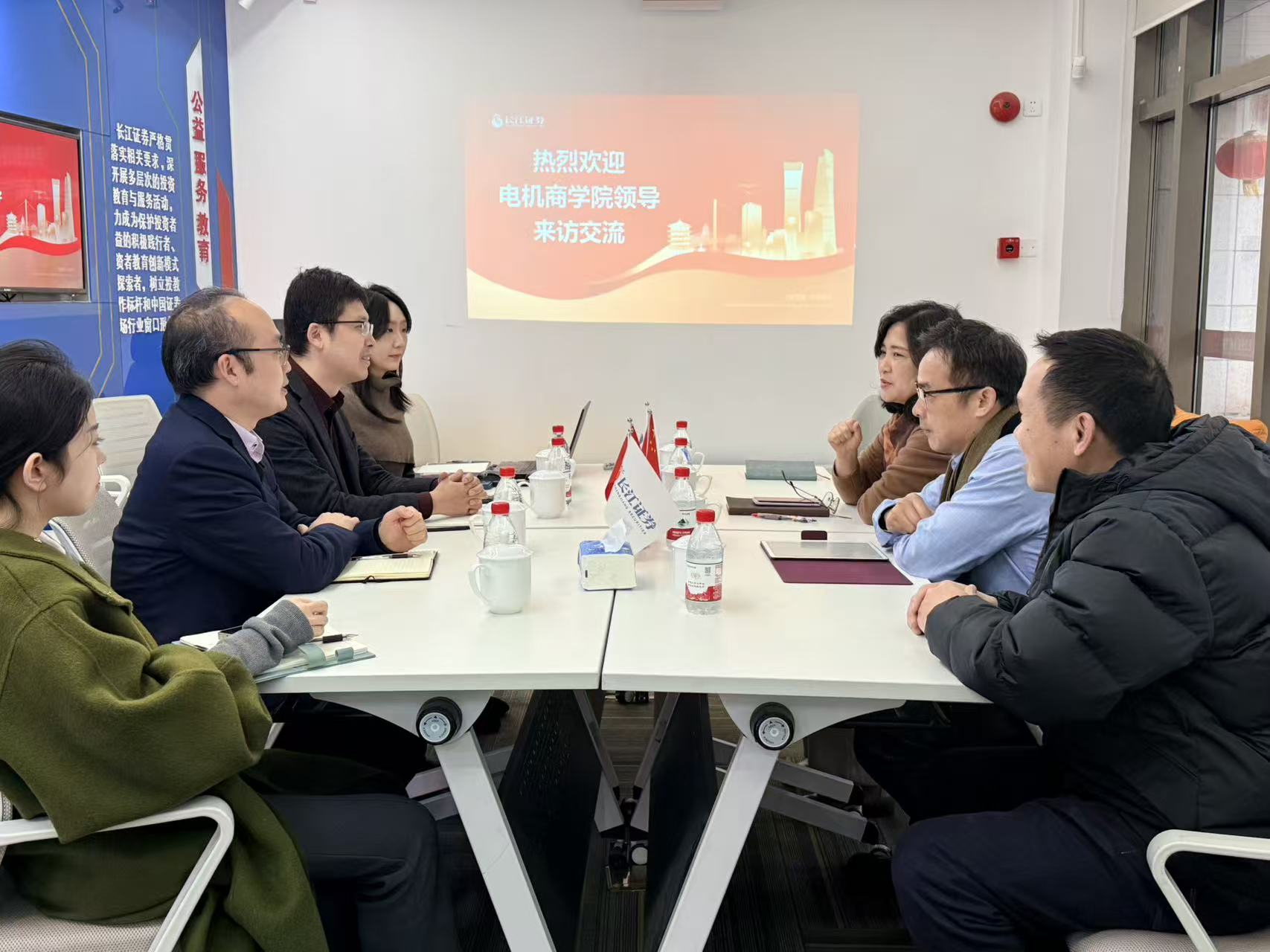 商学院党委书记董雪静与经济与金融专业负责人韩栋、专业教师侯社红及就业工作辅导员黄富长赴长江证券临港新片区营业部开展深化共建基地建设洽谈:一是拓展实习实践基地,将企业资源有机融入学院“一二三四”人才培养体系;二是推进课程建设与教学合作,邀请企业专家参与研究生联合培养与本科生实践课程建设;三是加强考证支持与合作,共同搭建金融职业资格认证平台,为学生争取考证资源与企业培训支持,增强人才应用型能力。