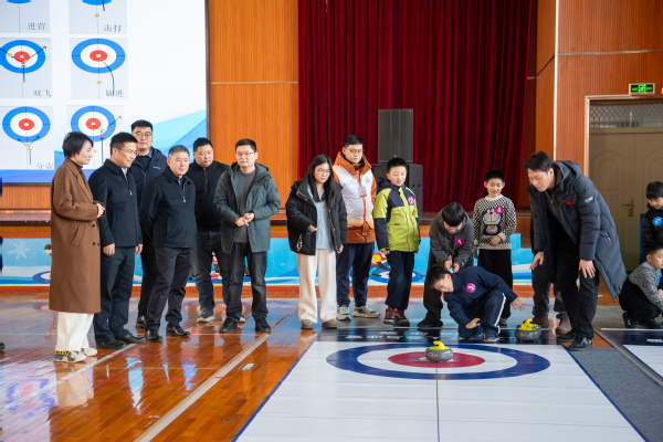 苗挺、朱洪春一行前往寒托班教室、活动场地等区域,实地察看办学环境与设施保障情况,详细询问寒托班日常管理、安全保障、课程推进及志愿者服务细节,了解特色冰壶课程的开展流程与教学效果,认真倾听大家在工作中的体会与需求,对大家的辛勤付出表示衷心感谢。