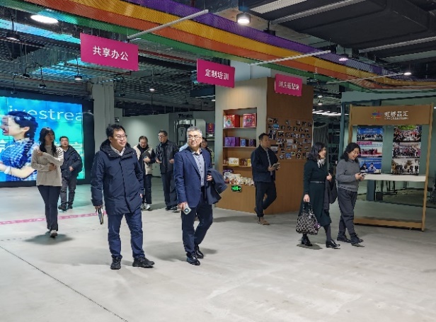 研讨会后,王志恒一行参观了长三角低空经济展贸中心和6+365进博会溢出效益平台,近距离了解虹桥品汇的低空汇谷、上海国际友城港、虹桥国际咖啡港和直播基地,并就双方如何结合大虹桥发展针对性地开展商科人才培养进行了交流。