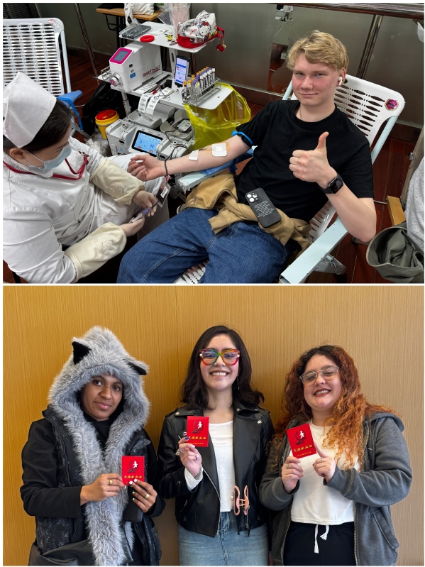 值得关注的是,8名国际教育学院的外籍学子也主动加入献血队伍,跨越国界、共赴善意,以实际行动践行生命至上的理念,传递奉献担当的情怀,让大爱无界的种子在校园生根发芽,彰显了国际青年的责任与格局。