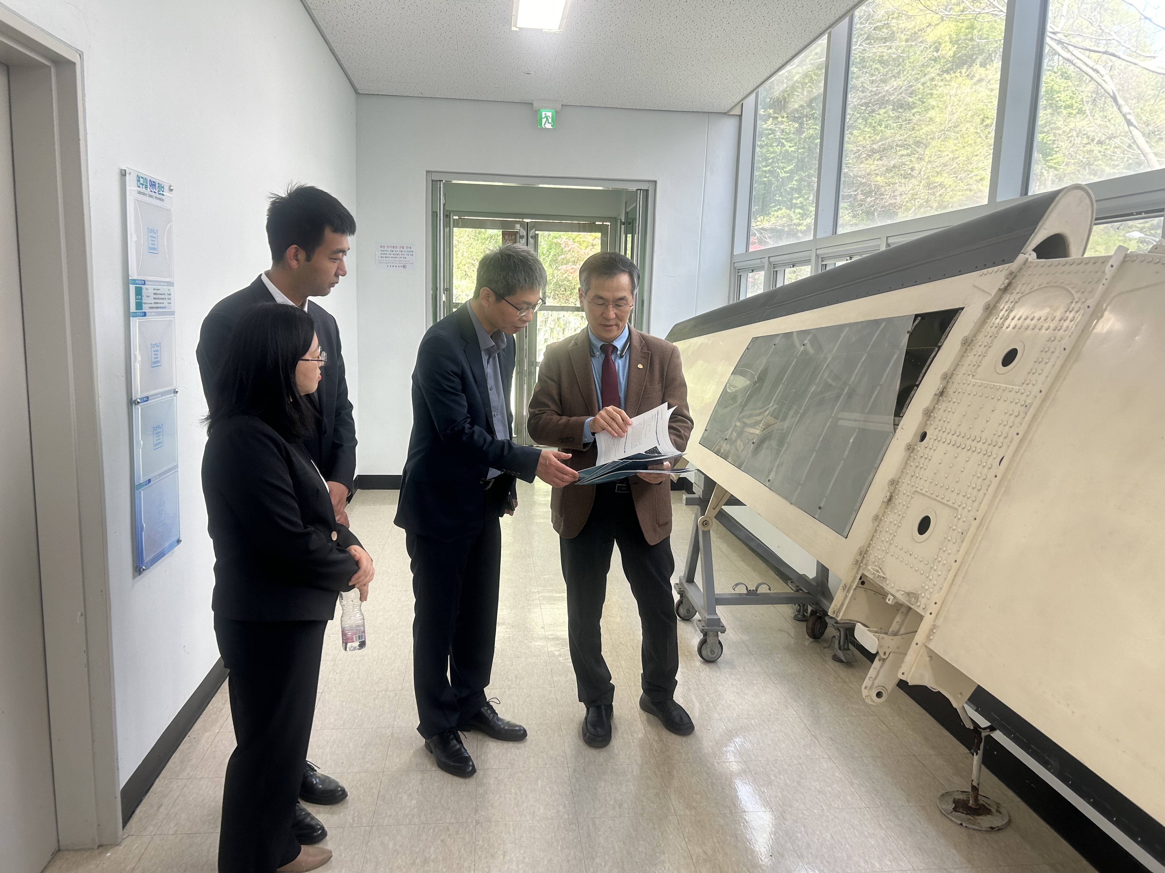 4月15日,代表团到访庆尚国立大学,该校国际交流处副处长及航空学院院长等七人组成的接待团队对代表团予以亲切接待。交流伊始,代表团在接待团队的陪同下参观了校园,详细了解了该校的学生宿舍、食堂、文体活动中心等生活设施,随后在该校航空学院院长的陪同下,参观了航空学院各个实验室,深入了解其教学科研条件与实验平台建设情况,对庆尚国立大学人性化的校园管理、完善的后勤保障及雄厚的科研实力给予高度评价。两校自2025年建立合作关系,此次交流聚焦合作领域的拓展与深化。会上,我校代表团系统介绍学校办学概况、学科优势与国际合作布局,双方围绕学分互认、双学位培养、联合科研等方向展开深入探讨,并就科研伙伴计划、暑期夏令营、暑期短期学生团、研究生科研项目等具体合作事项进行细致磋商,达成多项阶段性共识,期待尽快推动合作成果落地。