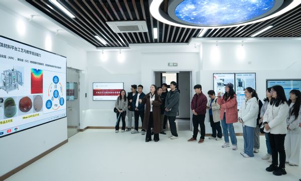 参访首站聚焦学校重点科研平台建设成果,先后走访了超宽禁带半导体实验室、先进功能材料实验室、滴水湖实验室等12个科研平台,涵盖半导体、智能制造、航空航天、新能源等战略性新兴产业领域。