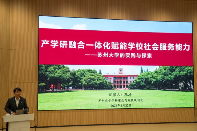 陈涛在报告中系统分享了苏州大学在产学研融合一体化方面的实践路径、宝贵经验和创新举措。他指出,面对新一轮技术革命和产业革命,苏州大学紧跟社会发展要求,探索深度融合、协同创新、共生发展的新路径,积极在发展新质生产力中作出更大贡献。实践中坚持“名城名校融合发展、人才强校、国际化”等“三大法宝”,扎根苏州沃土,构建常态化沟通协作机制,写好名城名校融合发展新答卷。他着重介绍了苏州大学在优化学科布局、抓实成果转化等方面的系列改革举措,强调通过打造与产业集群高度匹配的优势学科,持续增强学科与产业的关联度,并依托一体化、全链条、网格化的成果转化框架,培育扎根地方的优质企业,助推产业创新集群发展并服务经济社会高质量发展。他还以苏州大学未来学院为例,分享了“多元化”育人体系、“立体化”科研体系、“协同化”融合体系等人才培养改革的先进经验与具体做法。